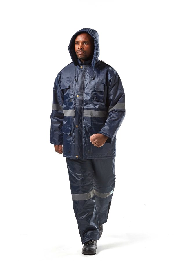 • Navy Blue, 2-piece freezer suit with 50mm silver reflective